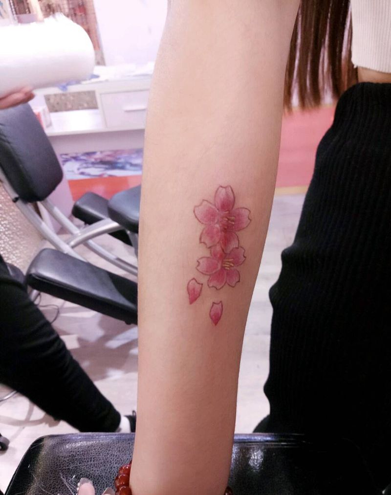 当前位置: 首页 >山西省大同市纹身店-精雕纹刺纹身图案>樱花纹身图片_手臂清新写实植物成品纹身图案
