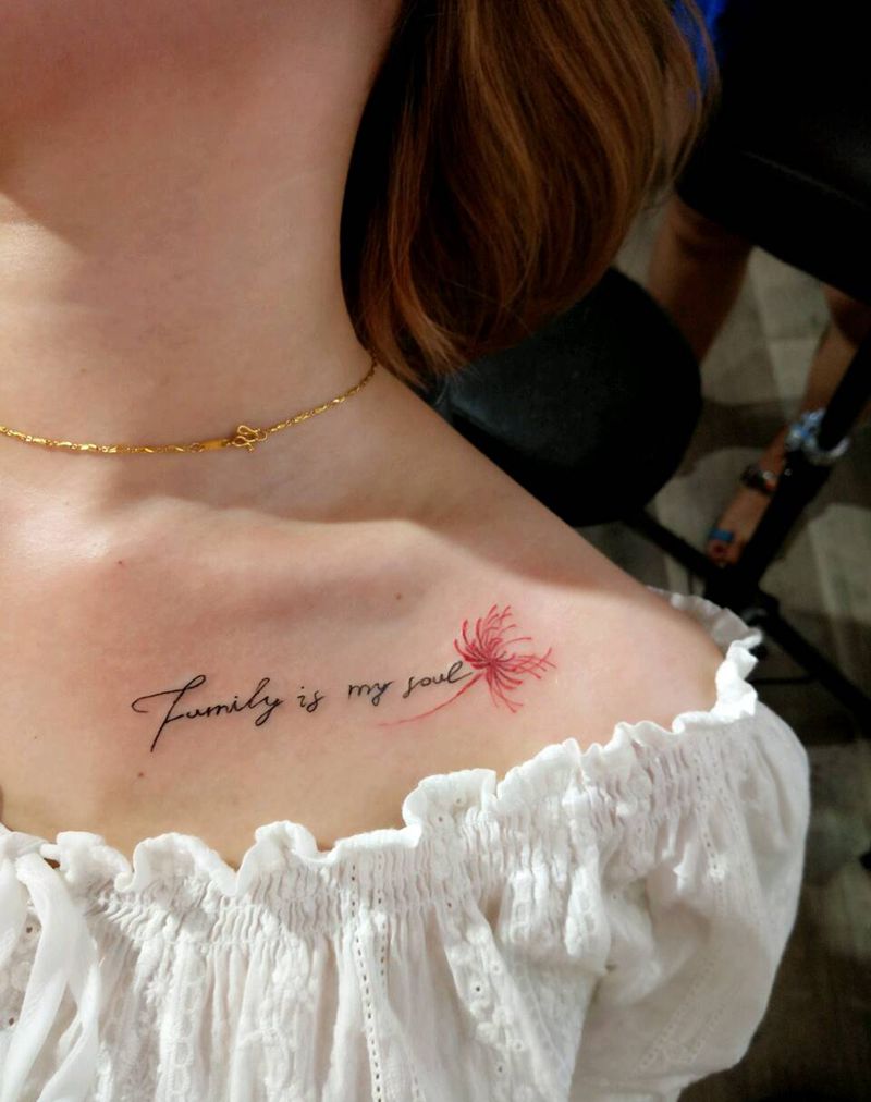 锁骨纹身纹身图片_胸部清新字符植物成品纹身图案