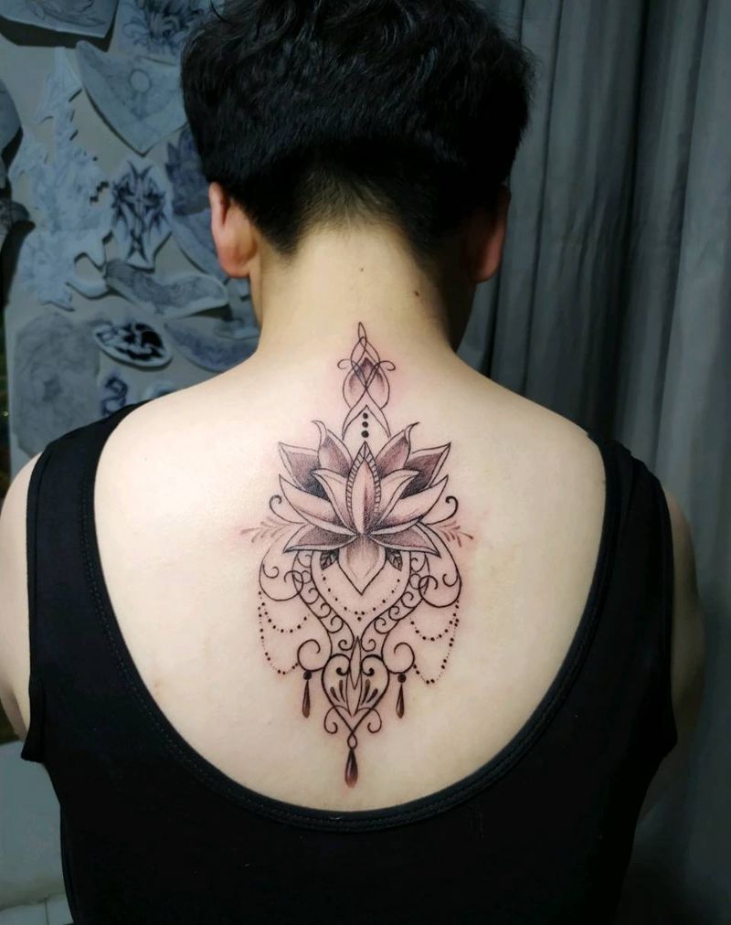 梵花纹身图片_背部点刺图腾纹身图案