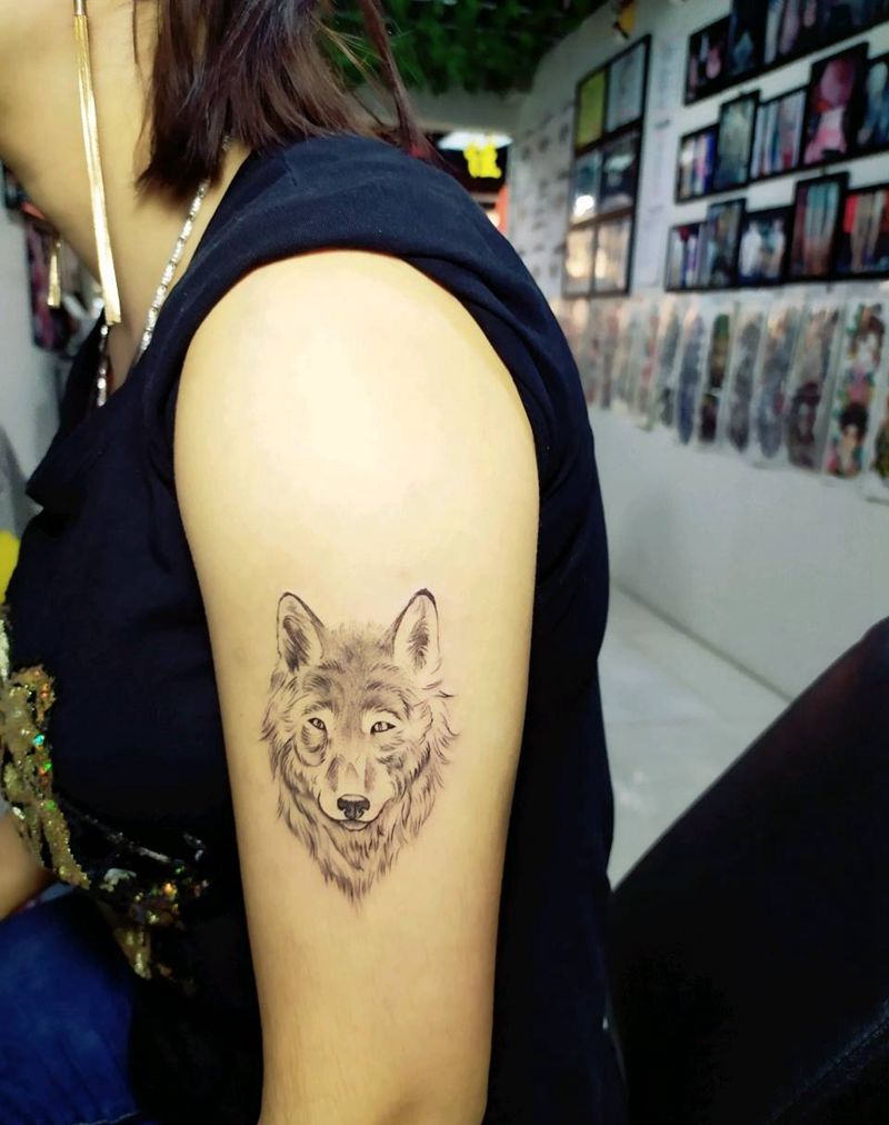狼头纹身图片_手臂点刺清新 狼头纹身图案