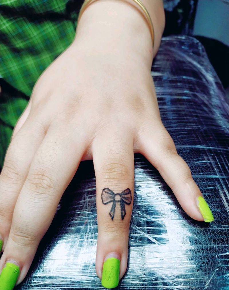 当前位置: 首页 >山西省大同市纹身店-精雕纹刺纹身图案>小清新蝴蝶结纹身图片_手部脚部点刺纹身图案