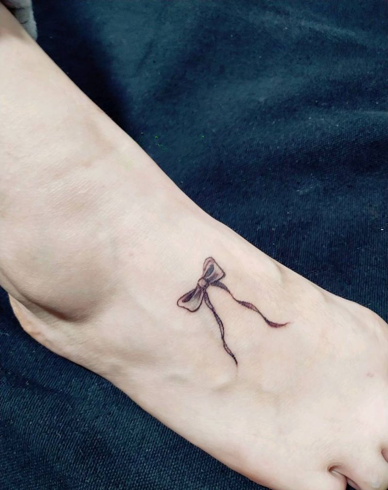 当前位置: 首页 >山西省大同市纹身店-精雕纹刺纹身图案>小清新蝴蝶结纹身图片_手部脚部点刺纹身图案