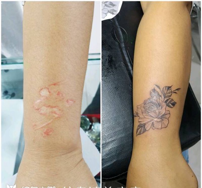 素花遮盖疤痕纹身图片_手部手臂点刺纹身图案