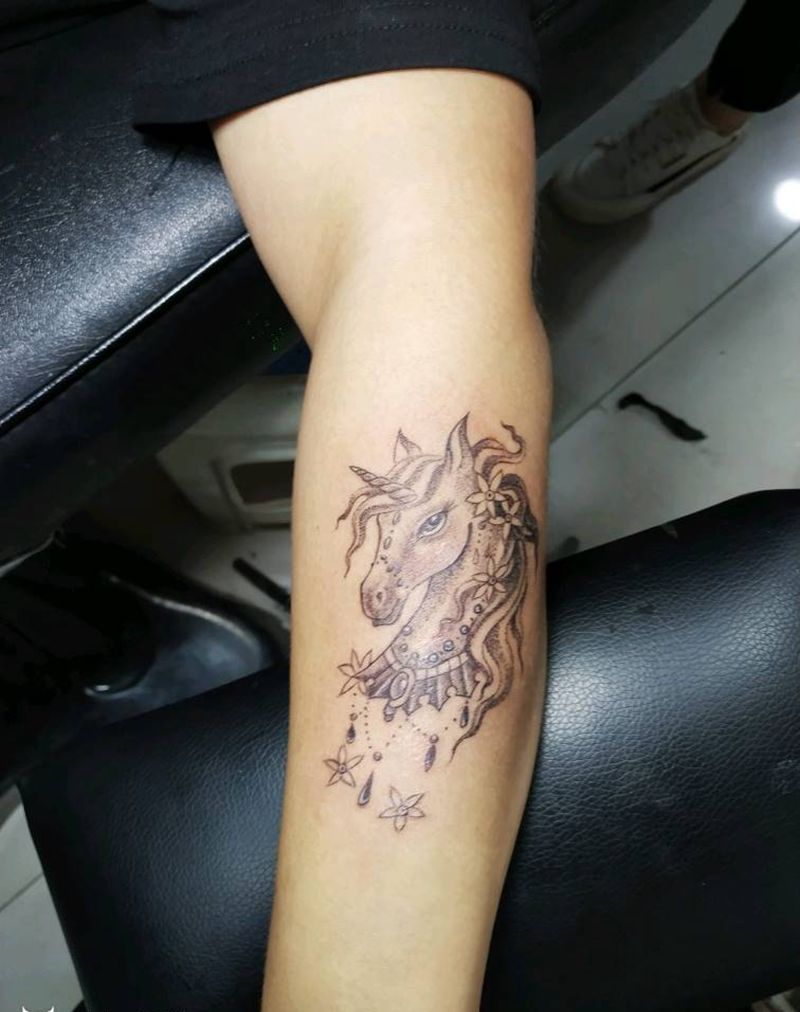 独角兽遮盖疤痕纹身图片_手臂点刺纹身图案