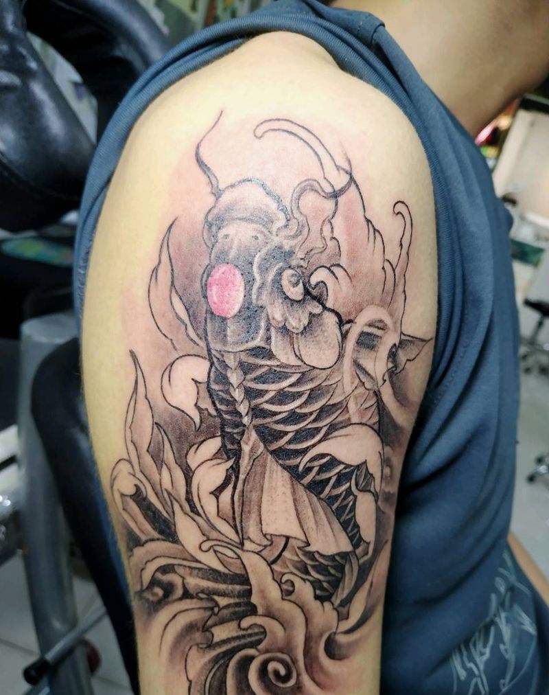 鲤鱼纹身图片_肩部新传统纹身图案