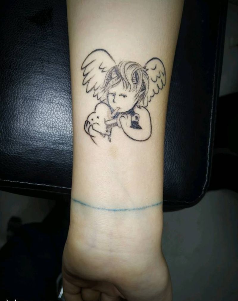 当前位置: 首页 >山西省大同市纹身店-精雕纹刺纹身图案>小清新扎心天使纹身图片_手臂几何New School纹身图案
