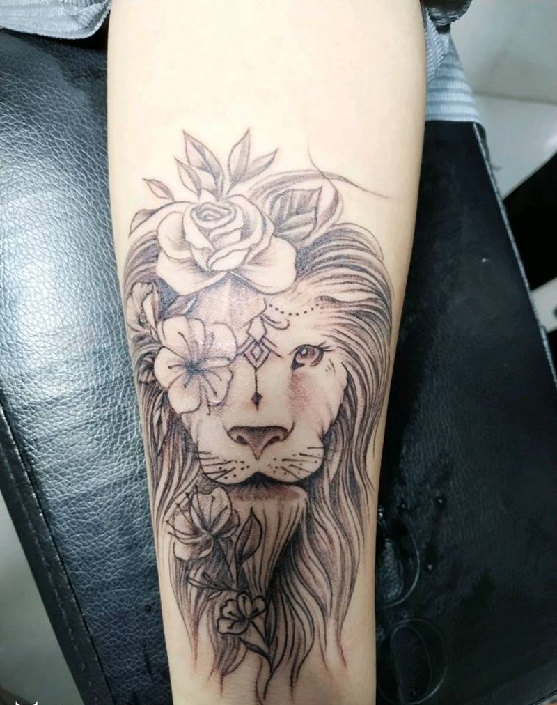 美女狮子纹身图片_手臂狮子纹身图案