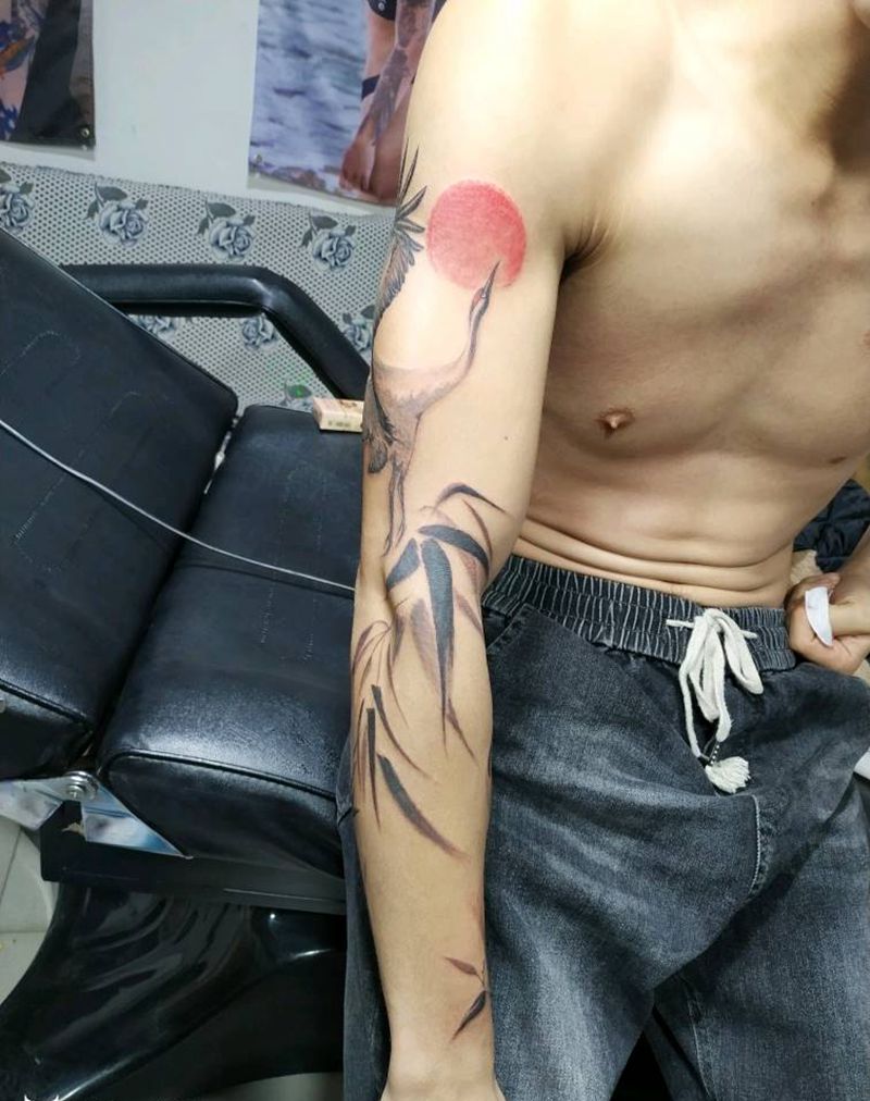 当前位置: 首页 >山西省大同市纹身店-精雕纹刺纹身图案>鹤纹身图片_手臂水墨竹子纹身图案