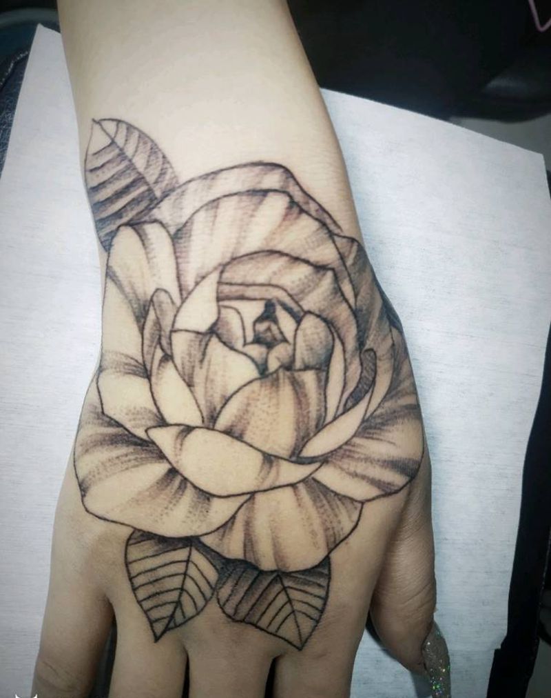 清新系列:素花玫瑰纹身图片_手部点刺纹身图案