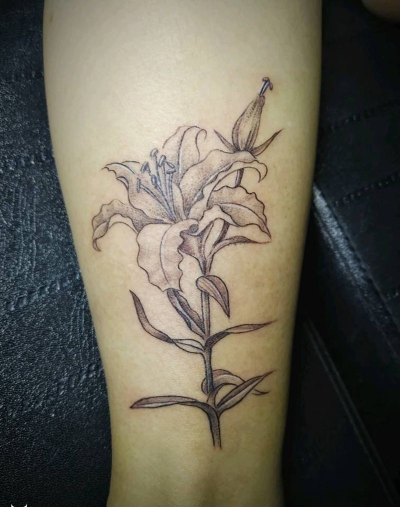 清新系列:百合纹身图片_腿部点刺纹身图案