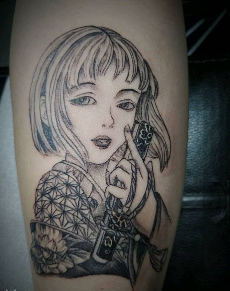 当前位置: 首页 >山西省大同市纹身店-精雕纹刺纹身图案>清新艺伎纹身图片_手臂点刺新传统纹身图案