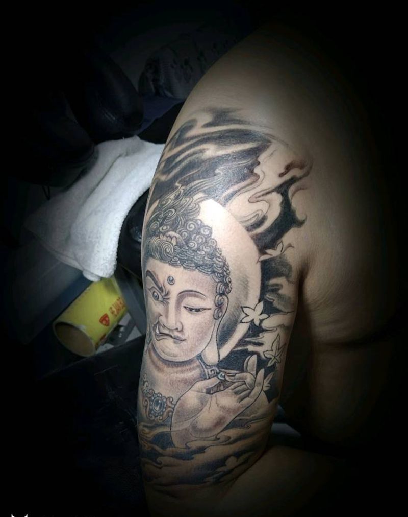 一念之间纹身图片_肩部新传统魔佛纹身图案