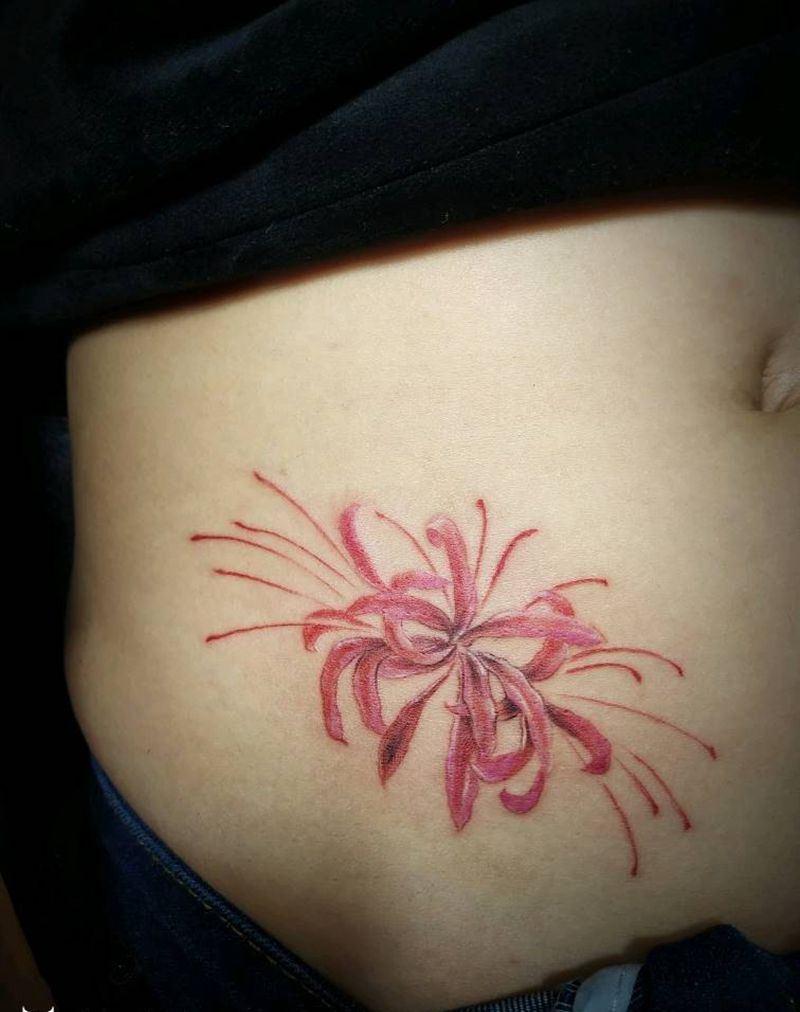 彼岸花纹身图片_腹部新传统性感纹身纹身图案