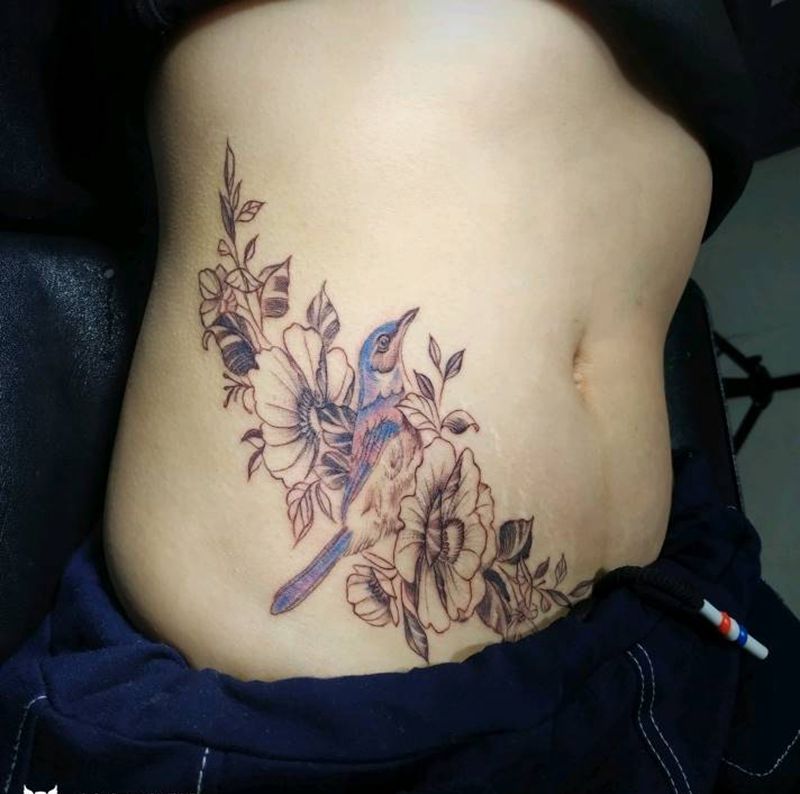时尚性感的腹部莲花纹