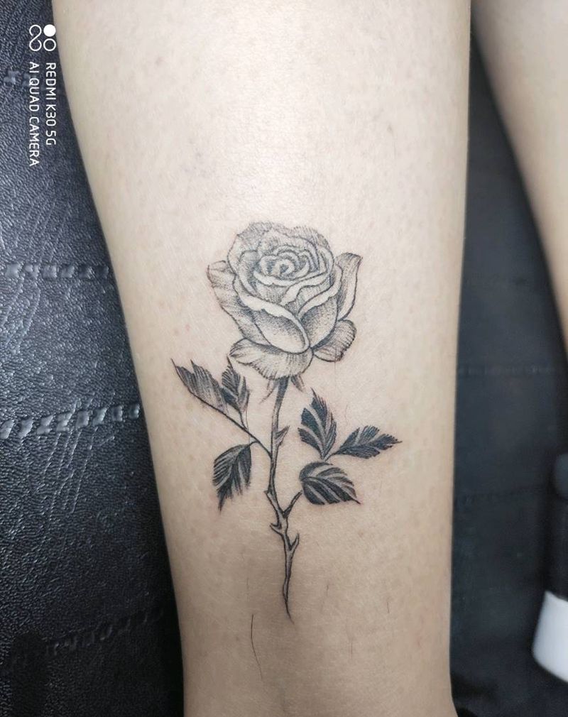 当前位置: 首页 >山西省大同市纹身店-精雕纹刺纹身图案>素玫瑰纹身图片_腿部新传统点刺素花纹身图案