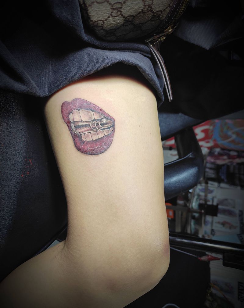 当前位置: 首页 >山西省大同市纹身店-精雕纹刺纹身图案>红唇咬子弹纹身图片_腿部欧美写实遮盖疤痕纹身图案