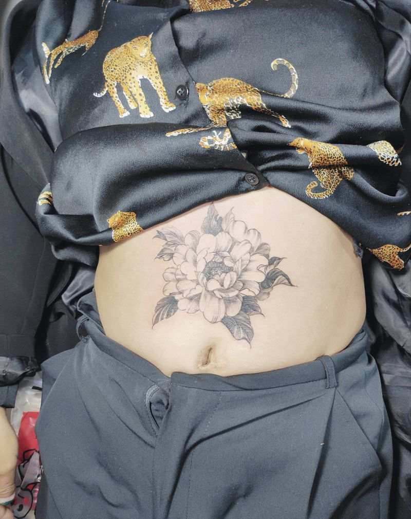 • 时尚性感的腹部莲花纹身图案