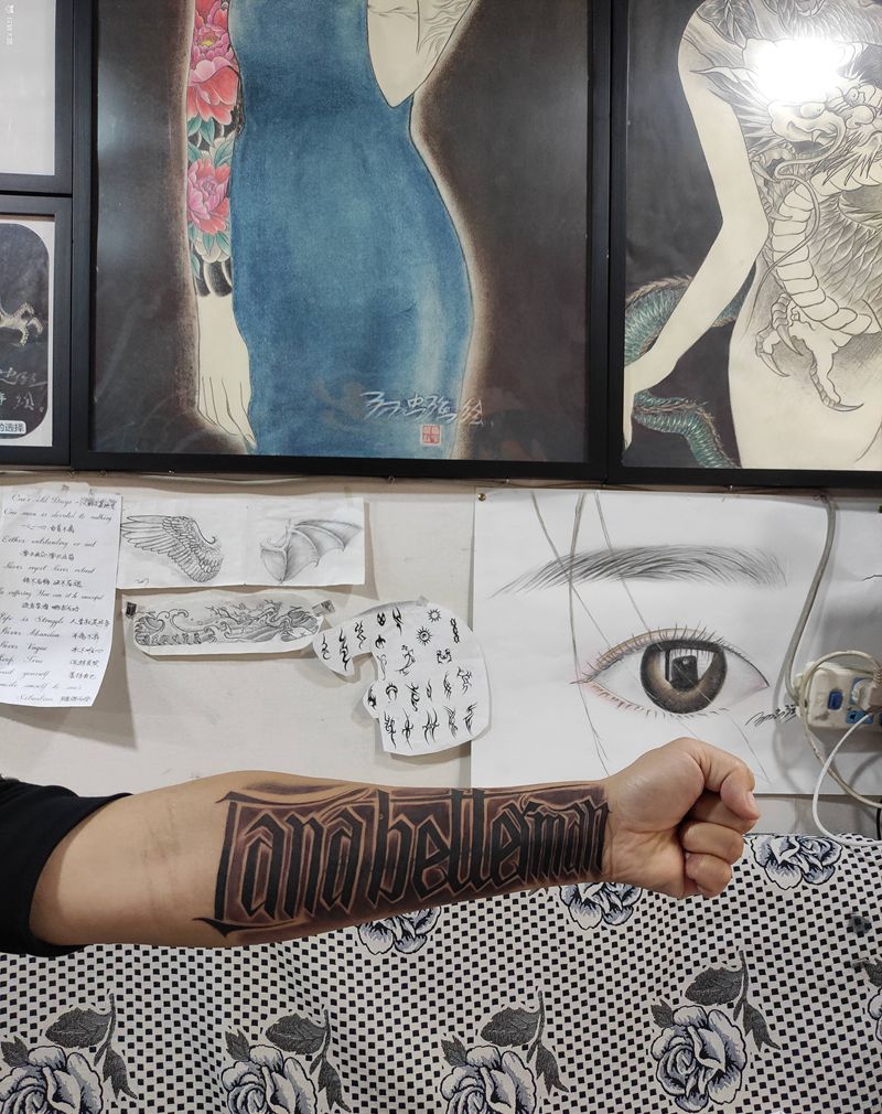 当前位置: 首页 >山西省大同市纹身店-精雕纹刺纹身图案>新字母遮盖旧字母纹身图片_手臂花体字纹身图案