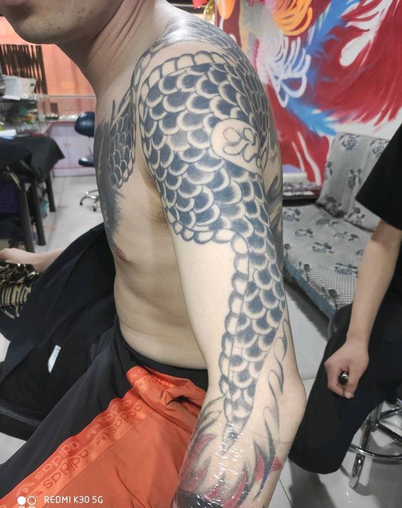 当前位置: 首页 >山西省大同市纹身店-精雕纹刺纹身图案>面具遮盖旧龙臂纹身图片_手臂新传统遮盖旧纹身纹身图案