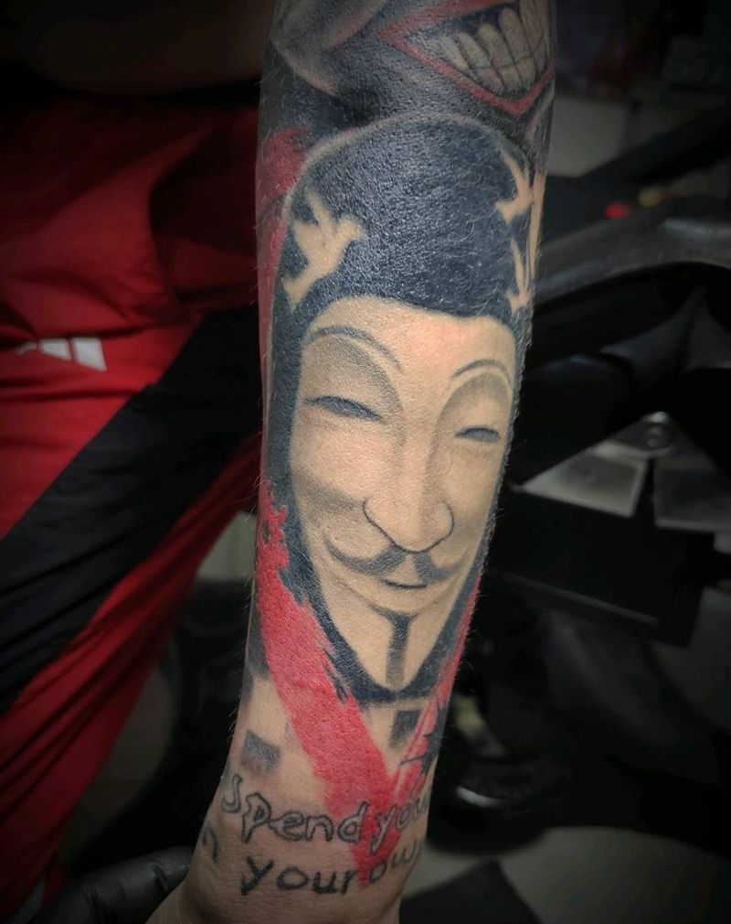 当前位置: 首页 >山西省大同市纹身店-精雕纹刺纹身图案>面具遮盖旧龙臂纹身图片_手臂新传统遮盖旧纹身纹身图案