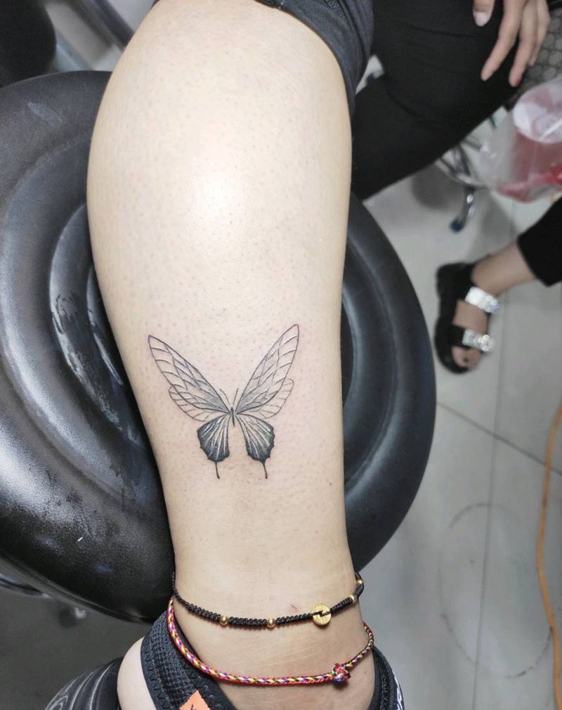 清新蝴蝶纹身图片_腿部清新纹身纹身图案