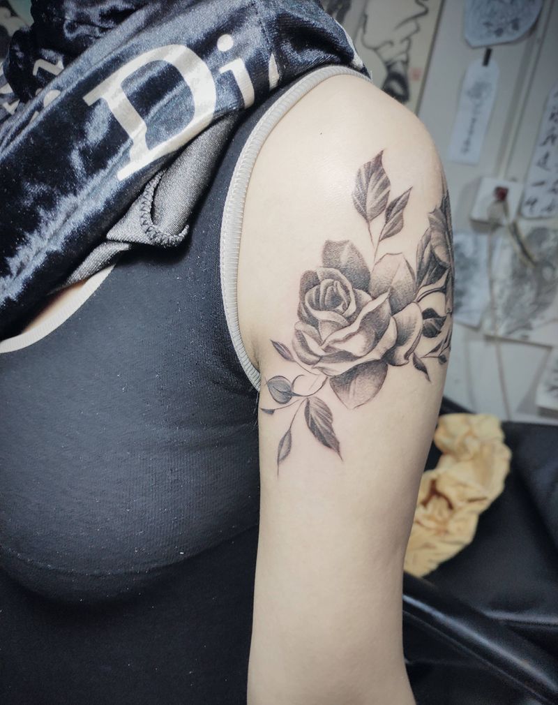 素花遮盖旧刺青,纹身图片_手臂欧美写实点刺纹身图案