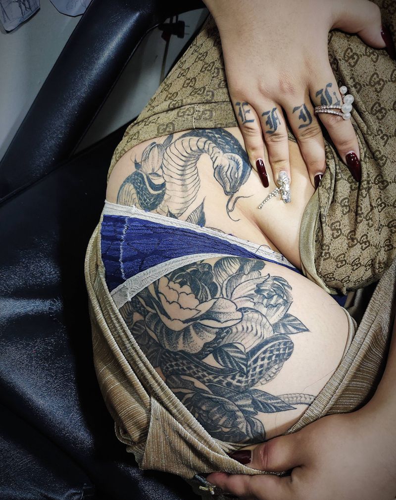 当前位置: 首页 >山西省大同市纹身店-精雕纹刺纹身图案>大胯纹身恢复一年后纹身图片_臀部腿部点刺欧美写实牡丹蛇纹身图案