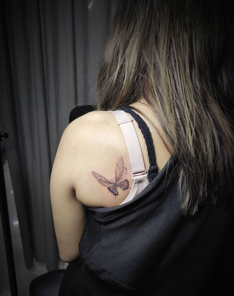 清新小纹身纹身图片_背部New School欧美写实纹身图案