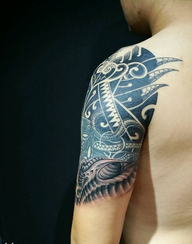 • 纹身吧推荐的披肩图腾半胛纹身图案作品展示