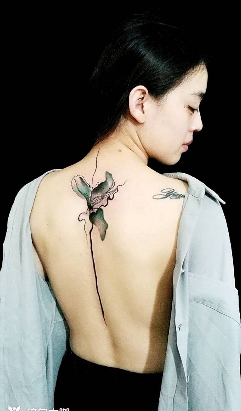 嗯纹身图片_背部颈部新传统水彩纹身图案