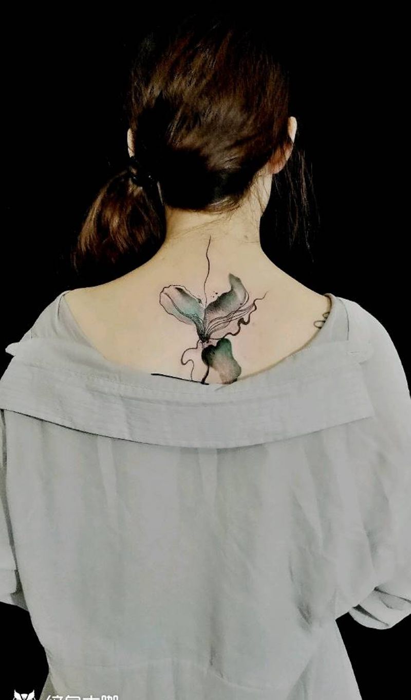 当前位置: 首页 >山西省太原市纹身店-古韵堂~青山纹身艺术工作室纹身图案>嗯纹身图片_背部颈部新传统水彩纹身图案