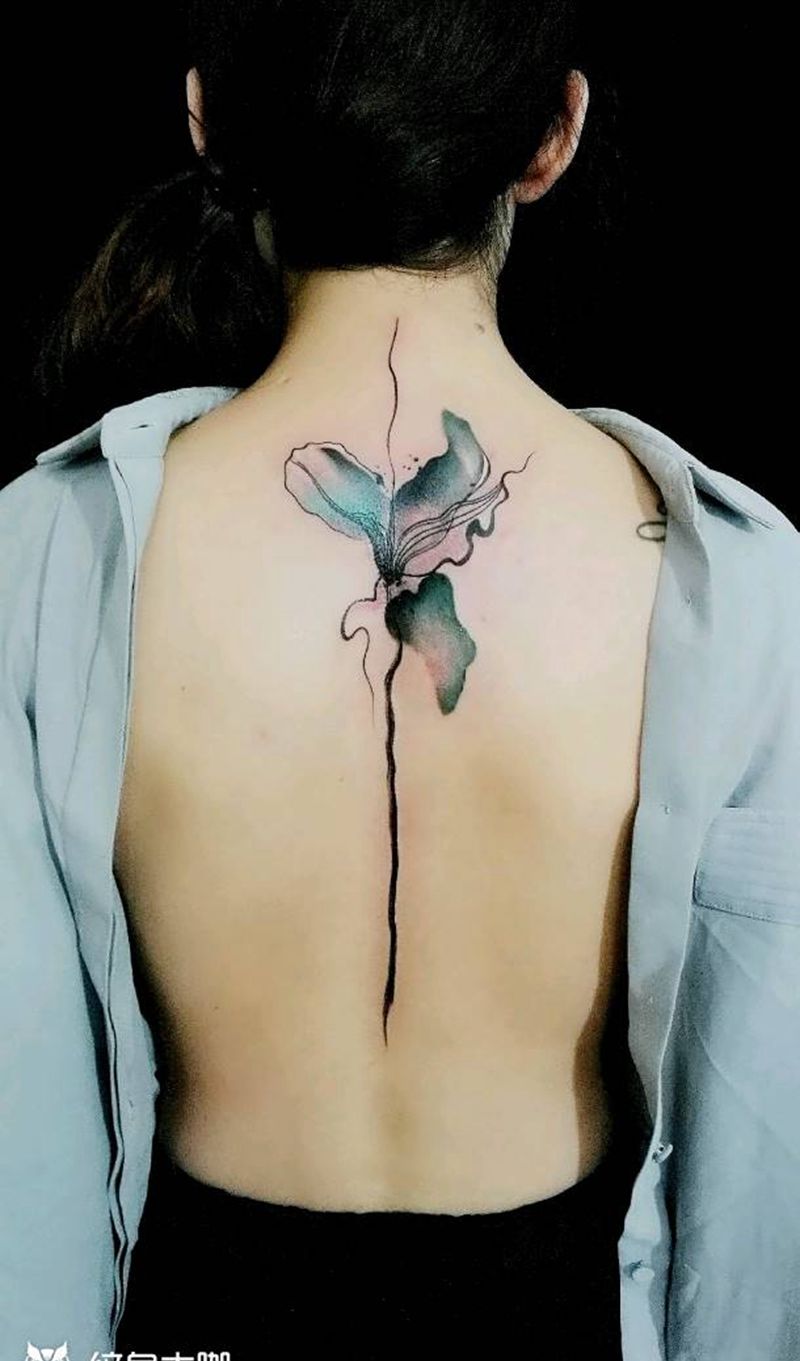 嗯纹身图片_背部颈部新传统水彩纹身图案