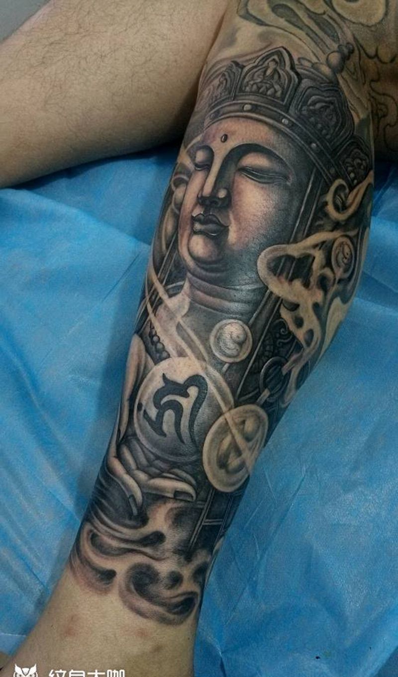 地藏王菩萨纹身图片_腿部脚部新传统纹身图案