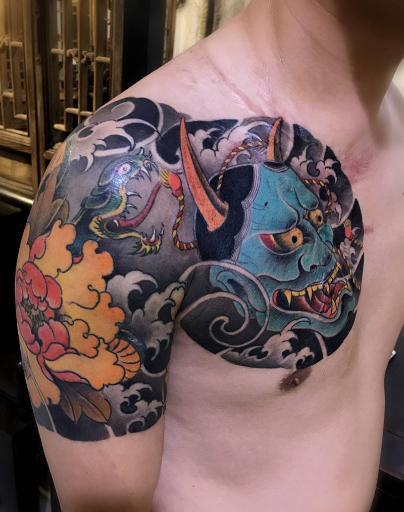 当前位置: 首页 >山西省阳泉市纹身店-问鼎刺客纹身纹身图案>般若半甲遮盖疤痕纹身图片_胸部新传统纹身图案