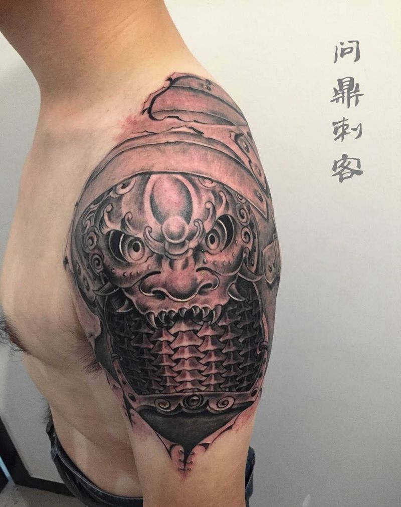 铠甲 半甲纹身图片_成品肩部欧美鬼神纹身图案