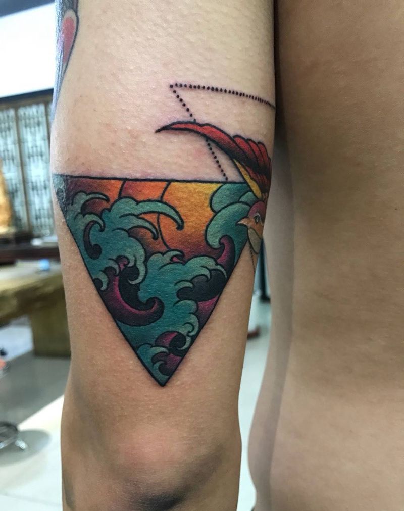 三角燕子纹身图片_手稿手臂传统几何原创纹身图案