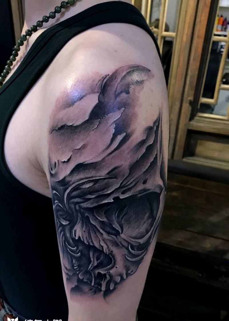 黑灰满背纹身图案