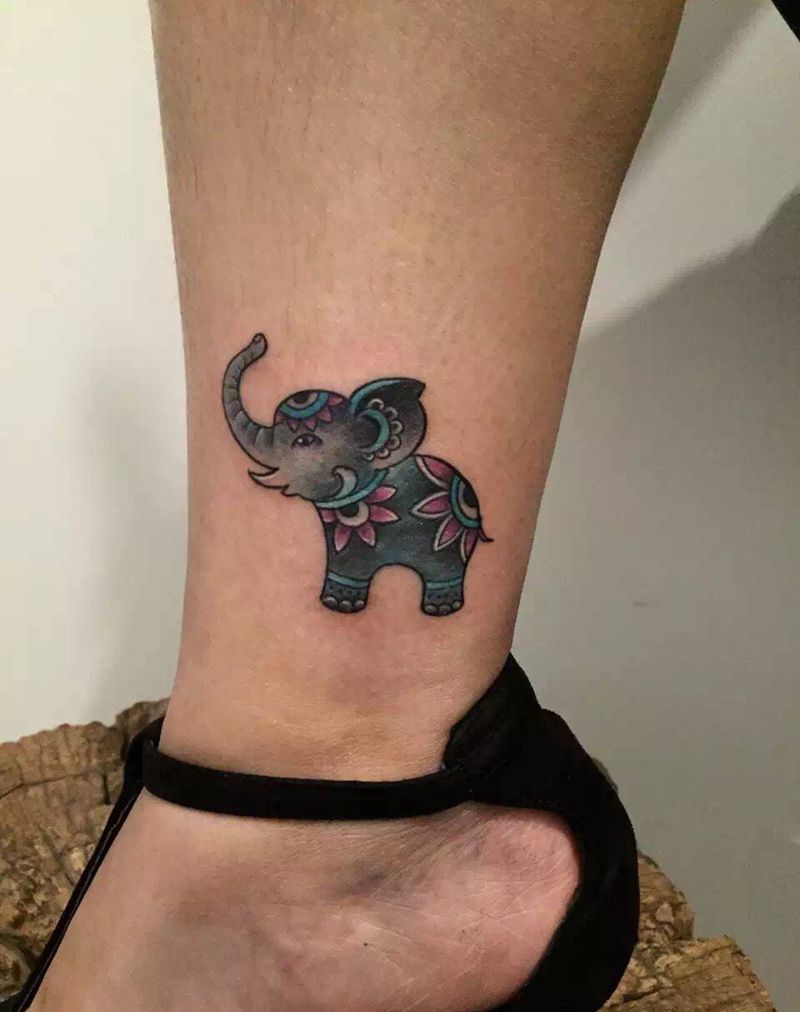 当前位置: 首页 >山西省阳泉市纹身店-问鼎刺客纹身纹身图案>小象纹身图片_成品腿部传统清新动物原创纹身图案