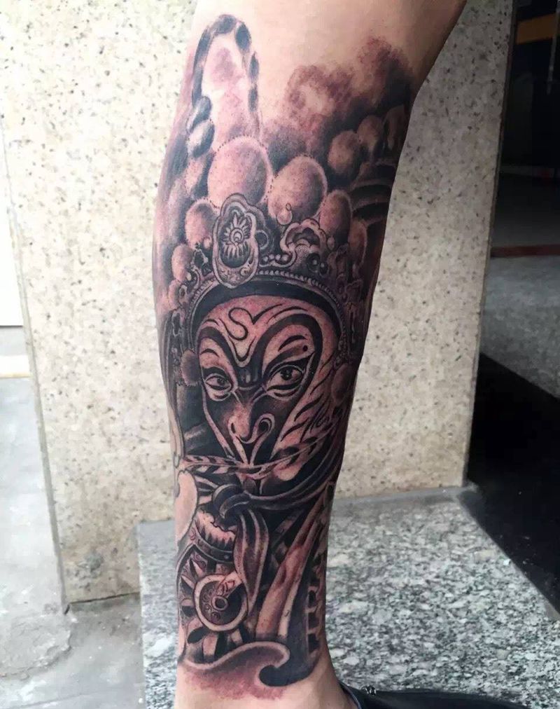 美猴王纹身图片_成品腿部传统人物鬼神纹身图案