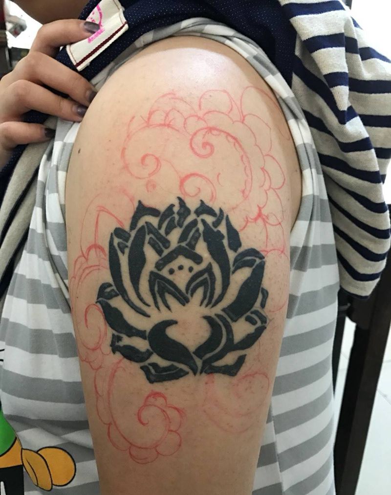 当前位置: 首页 >山西省阳泉市纹身店-问鼎刺客纹身纹身图案>荷花修改添加纹身图片_成品手臂传统图腾原创植物纹身图案