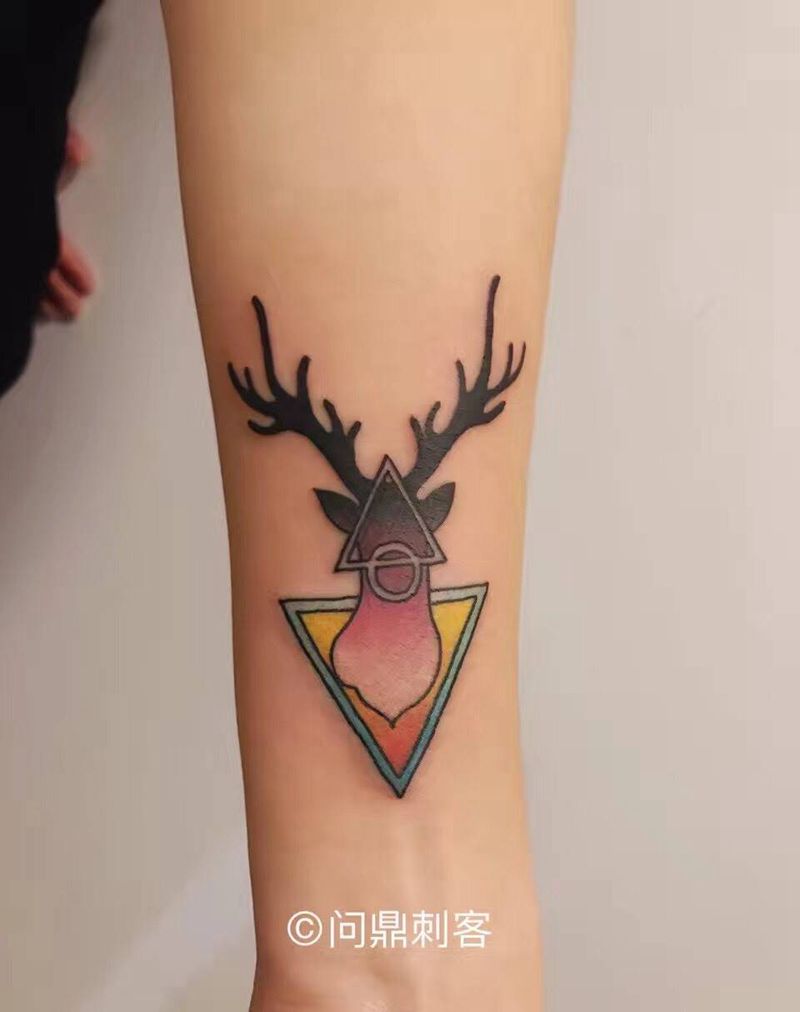当前位置: 首页 >山西省阳泉市纹身店-问鼎刺客纹身纹身图案>鹿纹身图片_成品手臂清新几何原创纹身图案