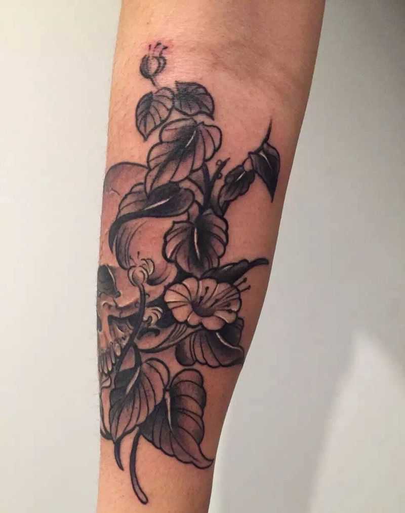 骷髅纹身图片_成品手臂传统植物静物鬼神纹身图案