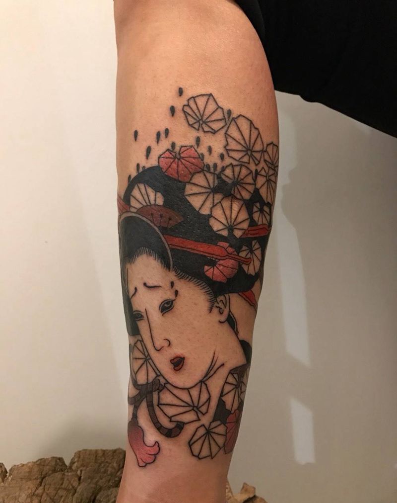 艺妓纹身图片_成品腿部传统人物鬼神纹身图案