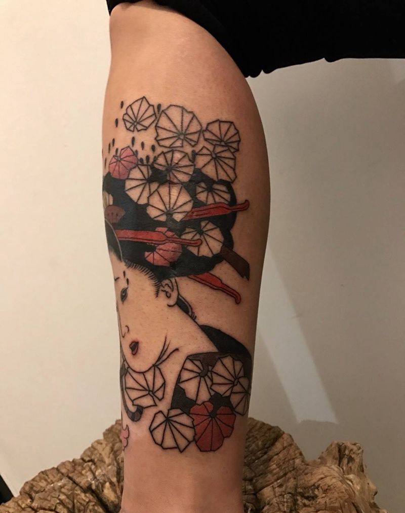 艺妓纹身图片_成品腿部传统人物鬼神纹身图案