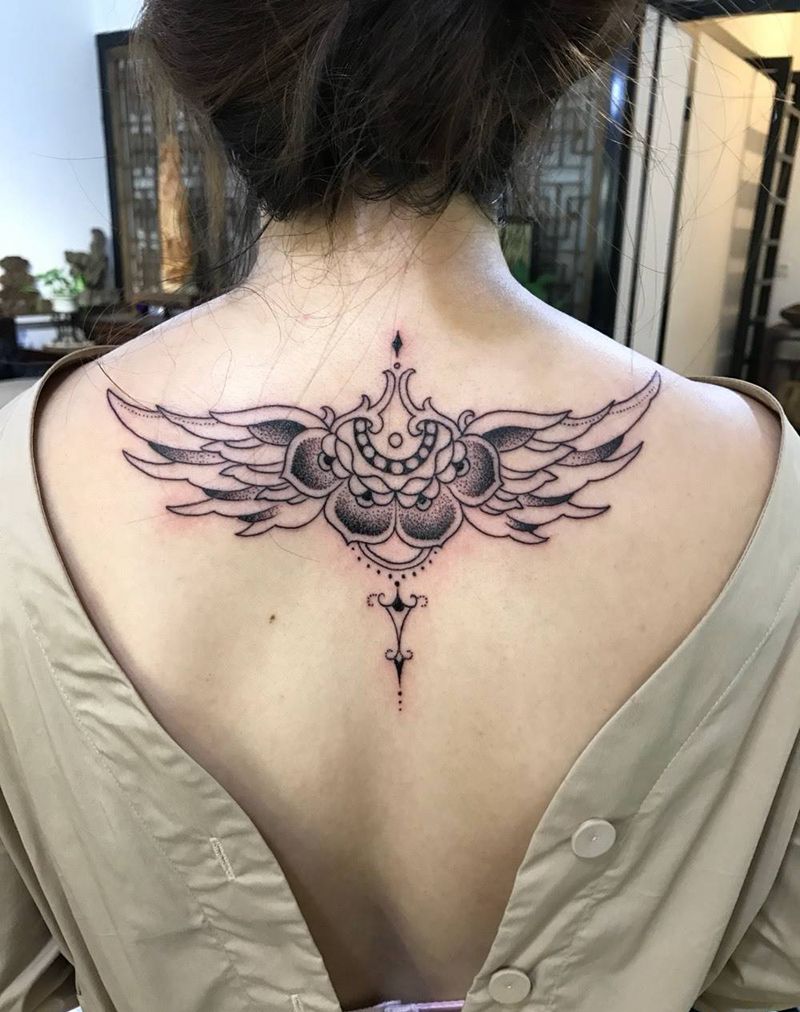 翅膀纹身图片_成品背部传统图腾原创纹身图案