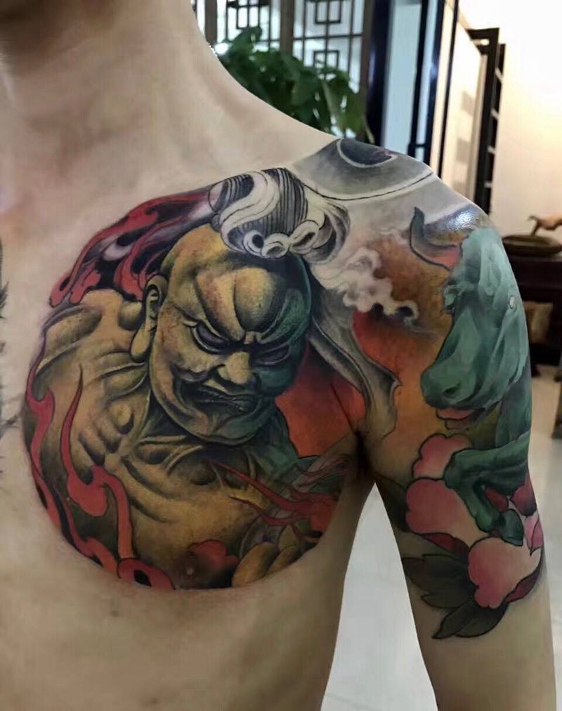 半甲纹身图片_成品肩部传统人物动物纹身图案