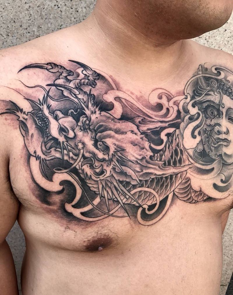 花胸纹身图片_成品胸部传统鬼神人物原创纹身图案