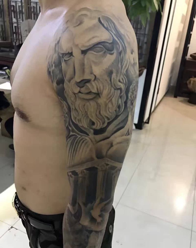 当前位置: 首页 >山西省阳泉市纹身店-问鼎刺客纹身纹身图案>宙斯纹身图片_成品手臂欧美写实人物鬼神纹身图案
