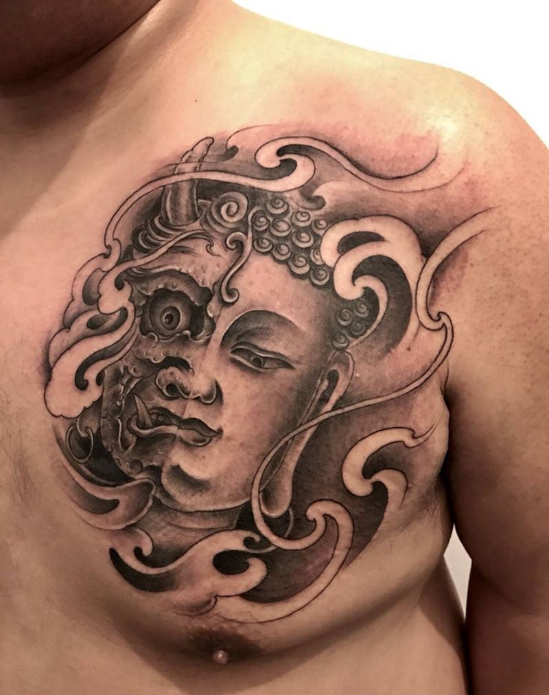佛与魔纹身图片_成品手稿胸部传统人物原创纹身图案