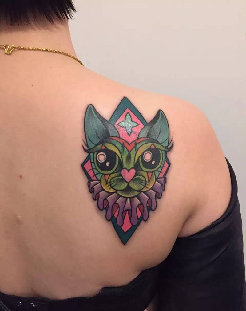 当前位置: 首页 >山西省阳泉市纹身店-问鼎刺客纹身纹身图案>猫纹身图片_成品背部传统动物纹身图案